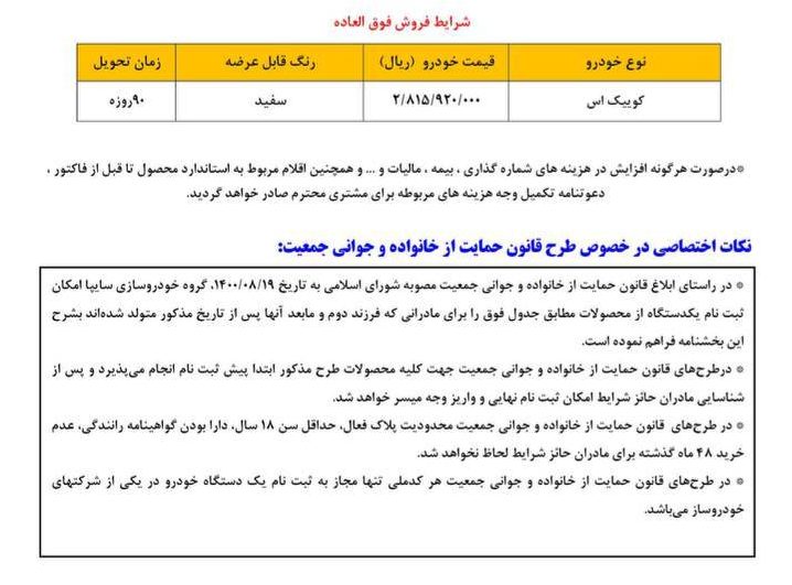 طرح فروش فوقالعاده سایپا (معمولی و مخصوص مادران):