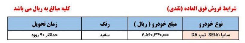 به اطلاع متقاضیان محترم و نمایندگیهای مجاز گروه خودروسازی سایپا میرساند، شرایط فروش فوقالعاده خودرو وانت سایپا ۱۵۱ مطابق شرح ذیل اعلام میشود: