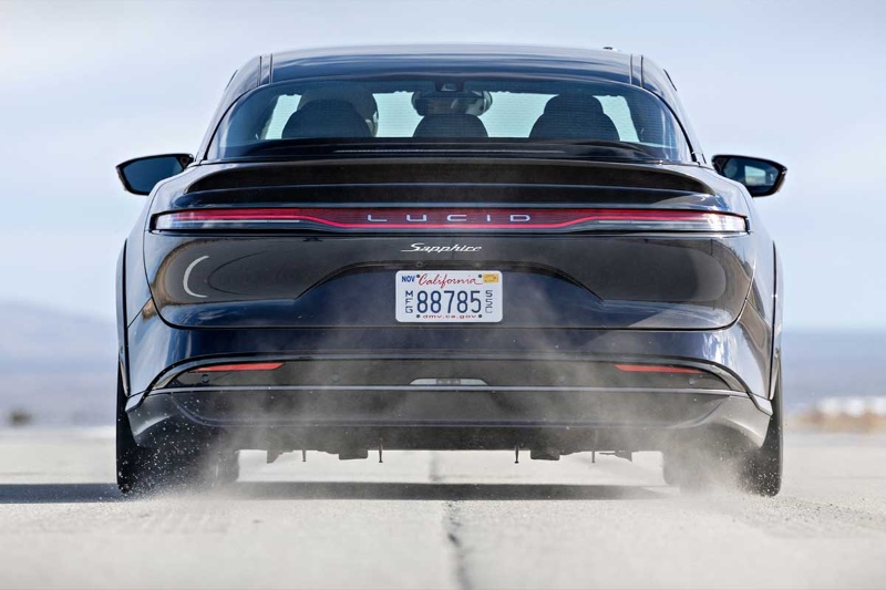 لوسید ایر سافایر به لطف لاستیکهای جدید، رکورد شتاب صفر تا ۹۶ را شکست و تاج سریعترین خودروی تولید انبوه را از پورشه و تسلا ربود.