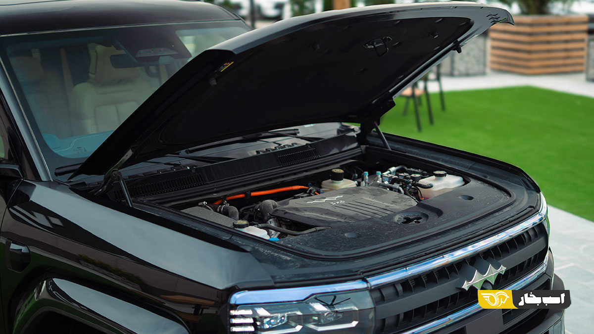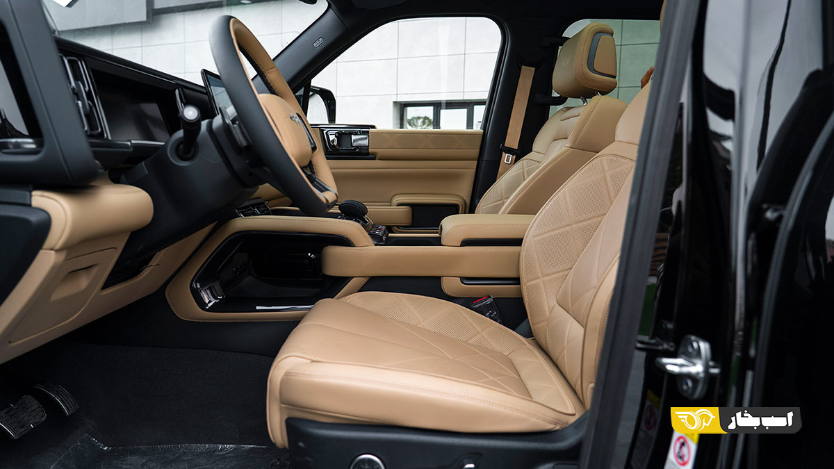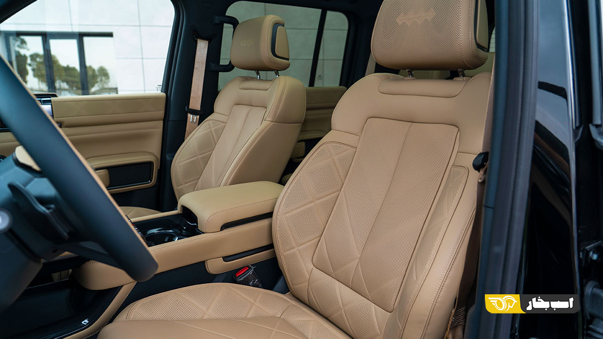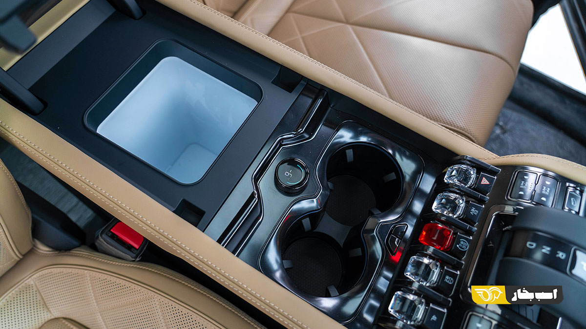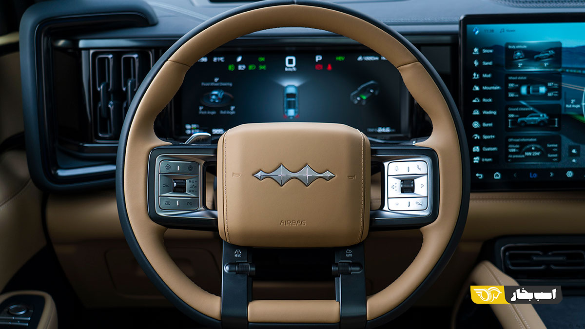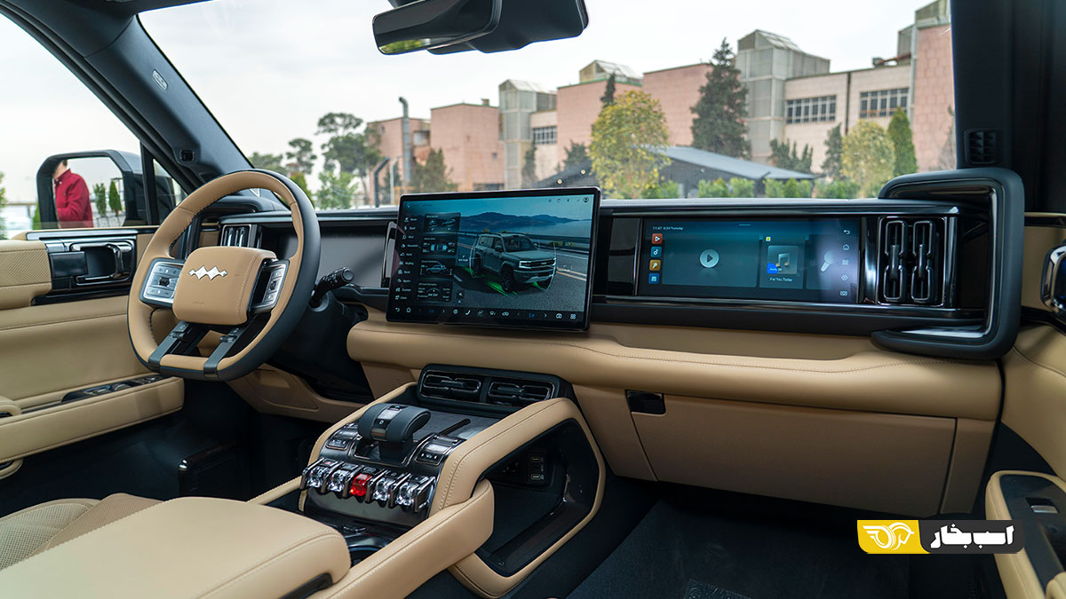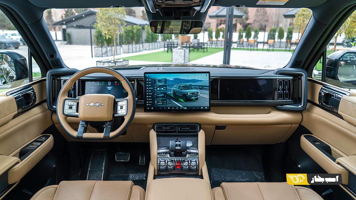 غربیلک فرمان طراحی ۴ شاخ دی کات داشته و کلید های کنترلی و همچنین کلیدهای چرخشی حالات مختلف رانندگی روی آن تعبیه شده است. یک کلاستر عریض، یک مانیتور مرکزی شناور و بزرگ و یک نمایشگر سرنشین کناری، مجموع بخش دیجیتال این خودرو را تشکیل میدهند. روی کنسول میانی دو صندلی هم شیفتر الکترونیکی گیربکس، کاپ هولدر، کلید استارت، شارژر وایرلس و کلیدهای مربوط به امکانات آفرودی خودرو قرار گرفته اند.