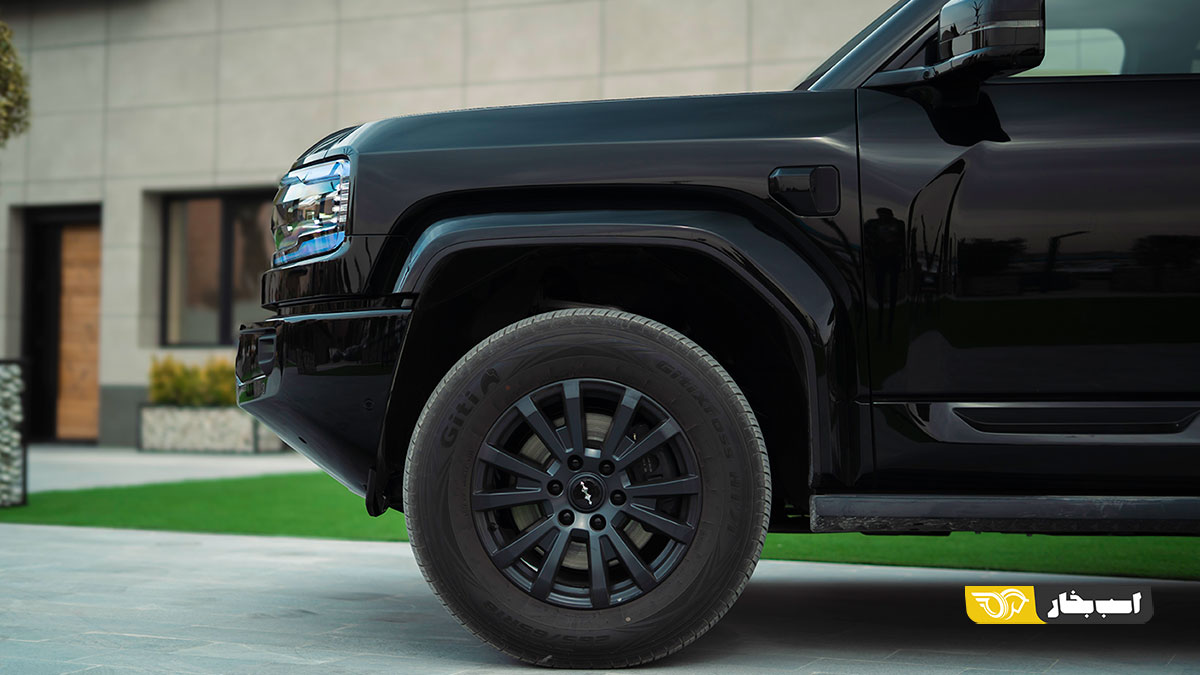 ظاهر خودرو کاملاً با رویکردی عضلانی و البته باکسی شکل طراحی شده و در نگاه نخست شباهتهایی به محصولات دیگر برندهای چینی، بهویژه مدلهای سری تانک، ایجاد میکند. در نمای جلو، چراغهایی با فرم فیزیکی مستطیلی شکل به چشم میخورند و یک نوار LED نیز همچون قابی نورانی، مجموعه چراغها و جلوپنجره را احاطه کرده است. در بخش عقب، چراغهای عمودی با الگوی D مانند در کنار زاپاس نصبشده روی درِ صندوق، هویت مکعبی و خطوط اتوکشیده بدنه را تقویت میکنند. افزون بر این، عواملی نظیر زوایای مناسب ورود و خروج، استفاده از تریم پلاستیکی در قسمتهای پایینی بدنه، دستگیرههای Easy Open و سایر جزئیات مشابه، همگی با هدف القای ماهیت آفرودی خودرو در طراحی گنجانده شدهاند.