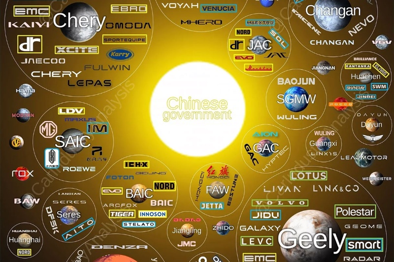 هرچند چهار غول خودروسازی چین بیش از نیمی از بازار این کشور را در اختیار دارند اما مجموعاً ۱۰۹ برند در این کشور در حال فعالیت هستند.